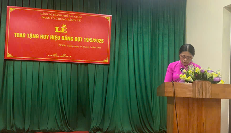 Chiều 16/5/2025, Đảng ủy Trung tâm y tế thành phố Bắc Giang tổ chức Lễ trao tặng Huy hiệu Đảng đợt 19/5/2025 cho đồng chí Phạm Thị Quỳnh Nga đảng viên Chi bộ Khoa KSBT Trung tâm y tế thành phố.